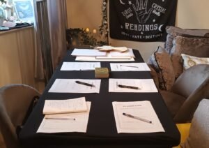 Group Readings POA. This takes place in the guests house or work up to 10 people @ 15 minutes each. If more than 10 people and travel contact Sharona